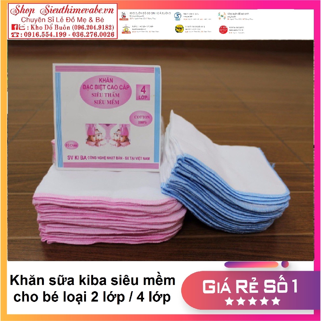 Khăn Sữa KiBa Siêu Mềm 2 Lớp 4 Lớp ( Sét 10 Chiếc) free ship