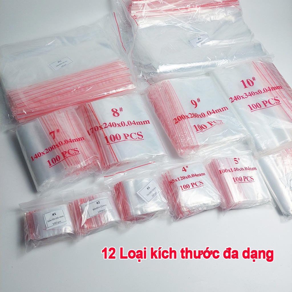 10 túi zipper vuốt mép chỉ đỏ nhiều size